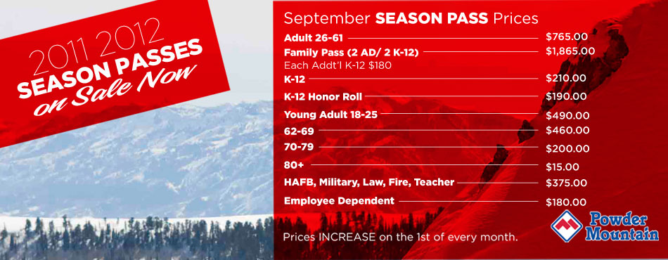 2011/2012 Season Passes are ...